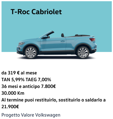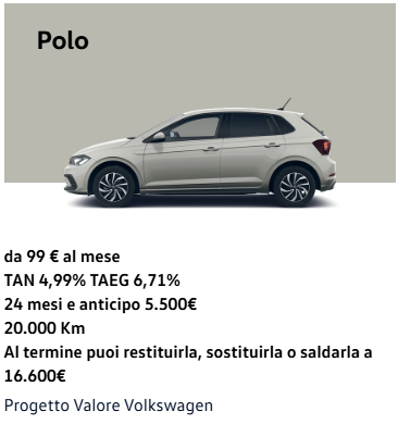 - TAN a partire da 7,99% per il resto di gamma Volkswagen